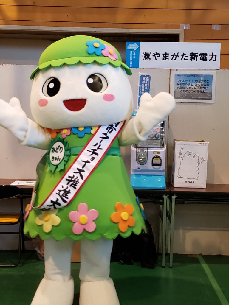 会場では、鶴岡市のエコキャラのみどりちゃんも登場!お子さまから大人の方まで、たくさんの笑顔に出会えて、とても楽しい一日となりました。