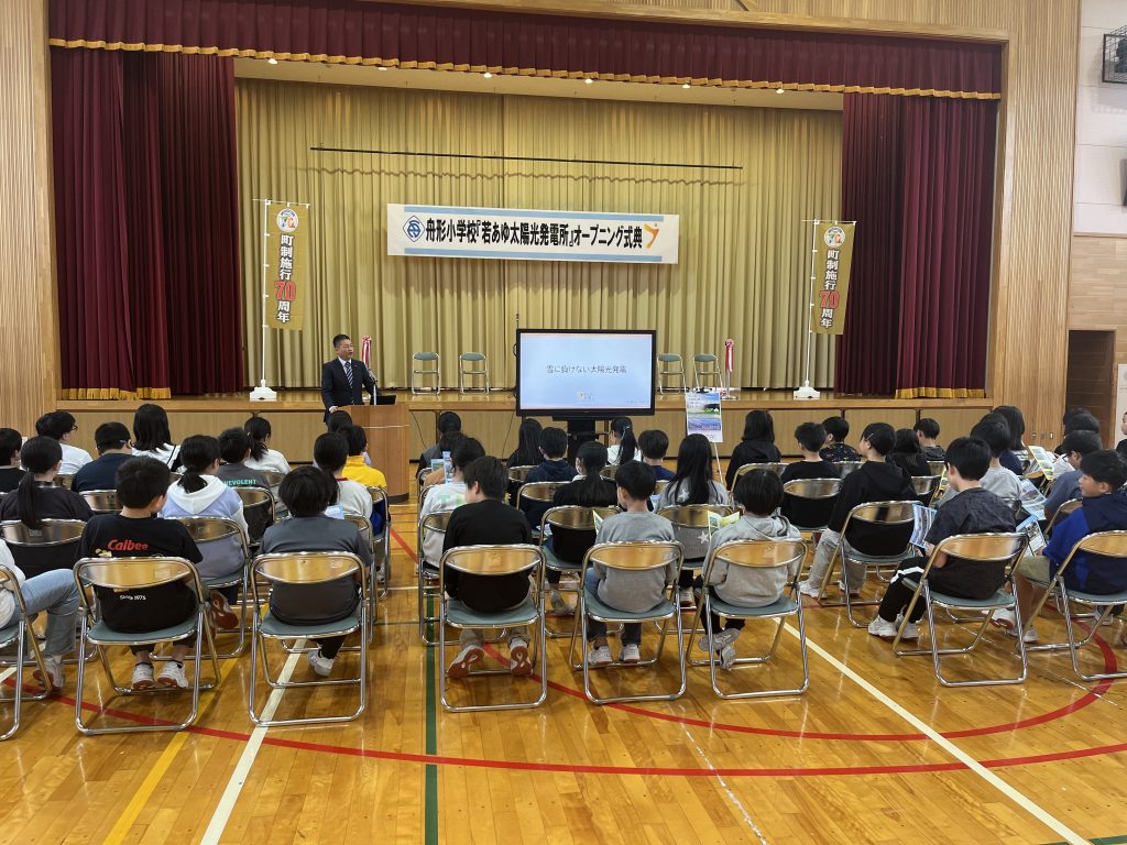 2025年10月16日に、舟形町立舟形小学校で「舟形小学校『若あゆ太陽光発電所』」運転開始のオープニング式典が開催されました。